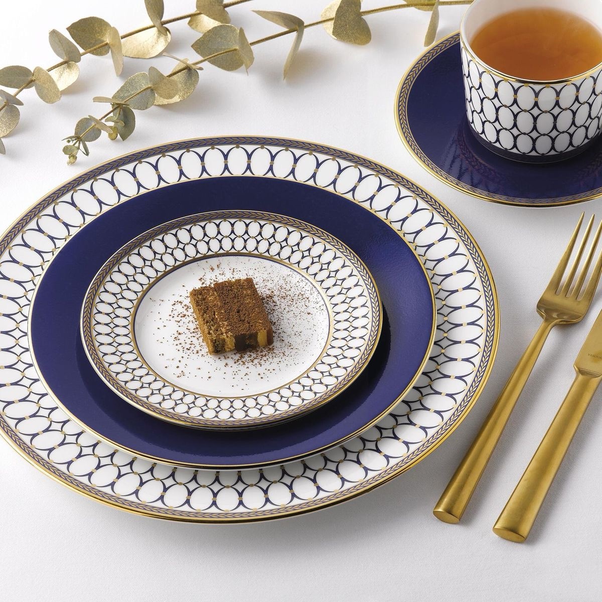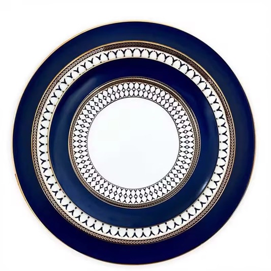 Set of 4 dinning set , Deep sapphire round plates accented with fine gold detailing and a sleek glazed texture for a bold, polished look.