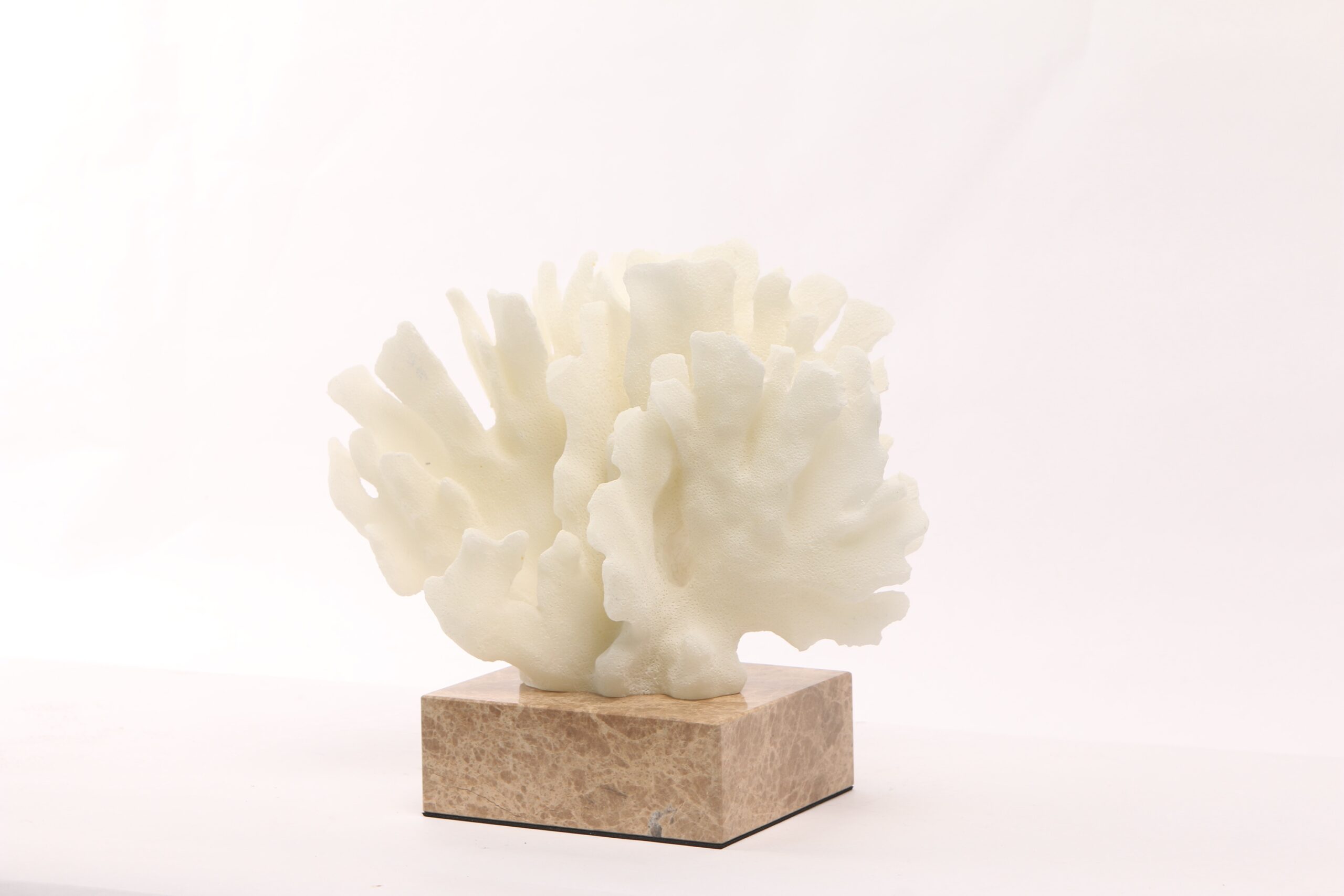 Crafted from raw, porous sand stone, these cuboid vessels provide a weighted, organic foundation for the delicate coral inspired sculpture above. It can be paired with varying height Thalassa I sculpture to create a rhythmic, architectural display that balances the permanence of stone with the ethereal lightness of the sea.