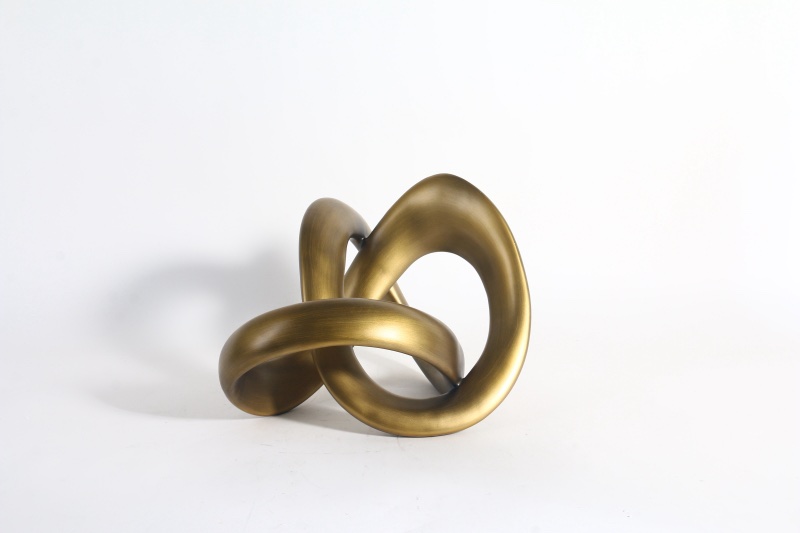 A modern abstract knot sculpture with a smooth gold finish, designed to add a sculptural and artistic touch to coffee tables, consoles, or shelves